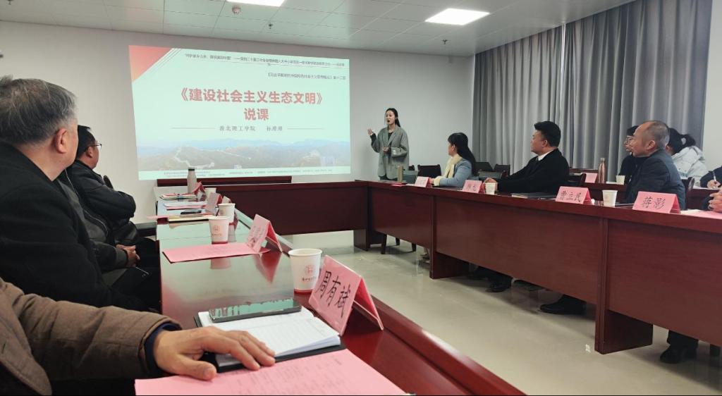本次联合教研活动以“党的二十届三中全会精神融入思政课”为主题,由来自大中小学各学段的四位思政课优秀教师代表分别围绕“习近平生态文明思想”中的教学内容进行了“同课异构”教学设计展示。杜集区朱庄实验小学的赵俊淇老师以《辽阔的土地》为题,从我国幅员辽阔的国土导入,结合多种教学手段进行了小学段教学展示。杜集区石台实验学校吴可可老师通过案例式教学形式,展示了题为《共筑生命家园》的初中段教学设计。开渠中学的蒋迎秋老师以《践行两山理念,打造幸福宜居环境》为题,结合当地乡土文化特色融入思政课,以座谈交流的形式进行了高中段的教学设计。最后,永利集团304am登录骨干教师孙澄澄进行了大学段的教学展示,她通过从理论到实践,从国内到国际,系统地阐述了一个完整的生态文明建设框架,展示了《建设社会主义生态文明》这一章节的教学设计。