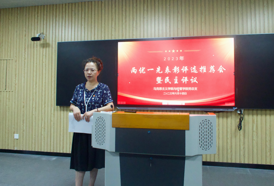 根据学校党委《关于开展2023年“先进基层党组织、优秀共产党员、优秀党务工作者”评选表彰活动的通知》精神,6月14日下午,永利集团304am登录与经济管理学院党总支组织召开“两优一先”表彰评选推荐会暨民主评议党员活动,总支书记吴玲主持会议,两个学院的全体党员教师参会。